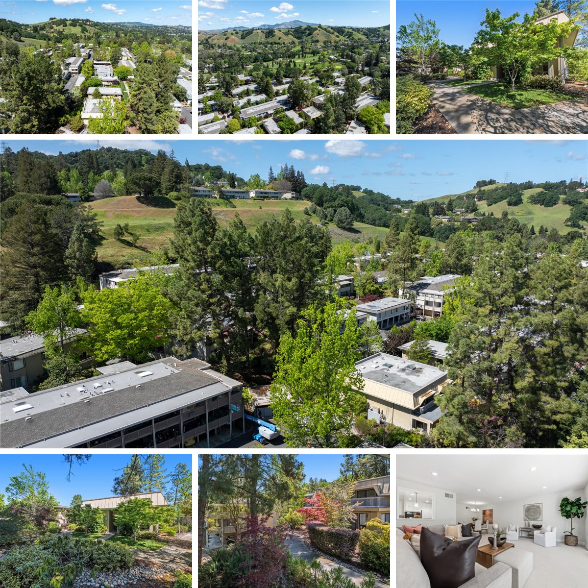 Tucked away among the trees in a quiet, park-like setting, this beautifully updated Piedmont Townhouse offers the perfect blend of space, comfort, and effortless living. Boasting over 1,900 square feet, the thoughtfully designed floor plan features three bedrooms and two-and-a-half tastefully remodeled bathrooms, including a convenient first-floor level-in bedroom suite, ideal for guests, office, or easy one-level living when desired. Bathed in natural light, the home welcomes you with fresh paint, new carpeting, smooth ceilings, recessed lighting, and an expansive living area that flows into a stunning enclosed sunroom with Travertine tile, perfect for relaxing, entertaining, or simply enjoying the tranquil views. The oversized primary suite is a true retreat, complete with a spacious bedroom, private open balcony, and a luxurious spa-like bath featuring a large tiled step-in shower. Move-in ready and thoughtfully maintained, this lovely townhouse is nestled in the highly sought-after Rossmoor community, renowned for its vibrant lifestyle. Residents enjoy access to over 220 clubs and activities, championship golf, swimming pools, tennis and pickleball courts, lawn bowling, hiking trails, and so much more. Privacy, comfort, and an active lifestyle, all in one wonderful home.